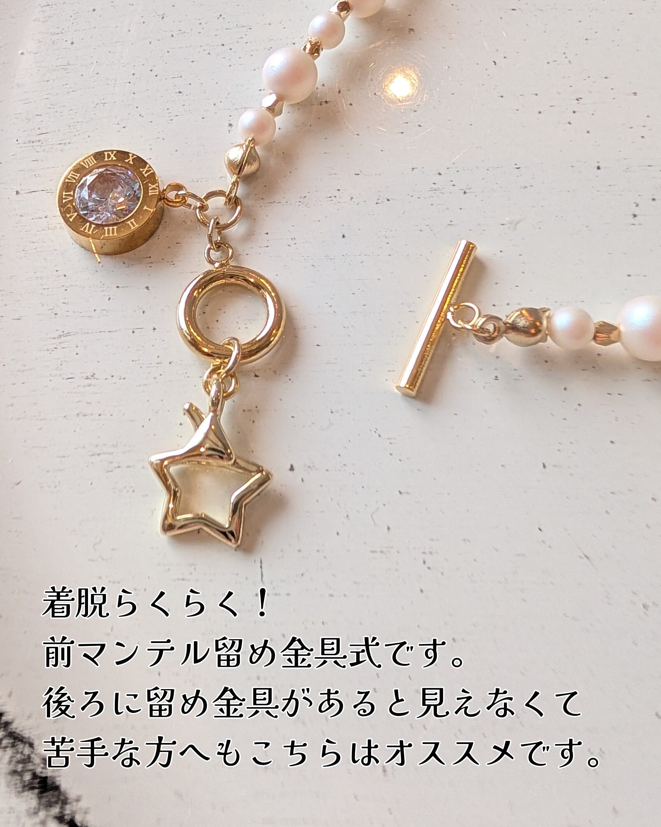●2wayスターパールチェーン長さ:約50cm前後+スライドボール式アジャスター約10cm
